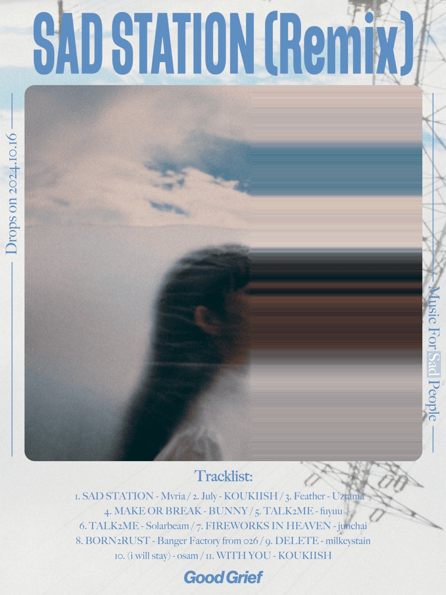 ポップパンク・バンド、Good Grief がアルバム『SAD STATION』のリリース1周年を記念した作品『SAD STATION (Remix)』を2024年10月16日に配信リリースすることを発表しました。また、この作品に収録されている「July – KOUKIISH Remix」が本日より配信開始となった。