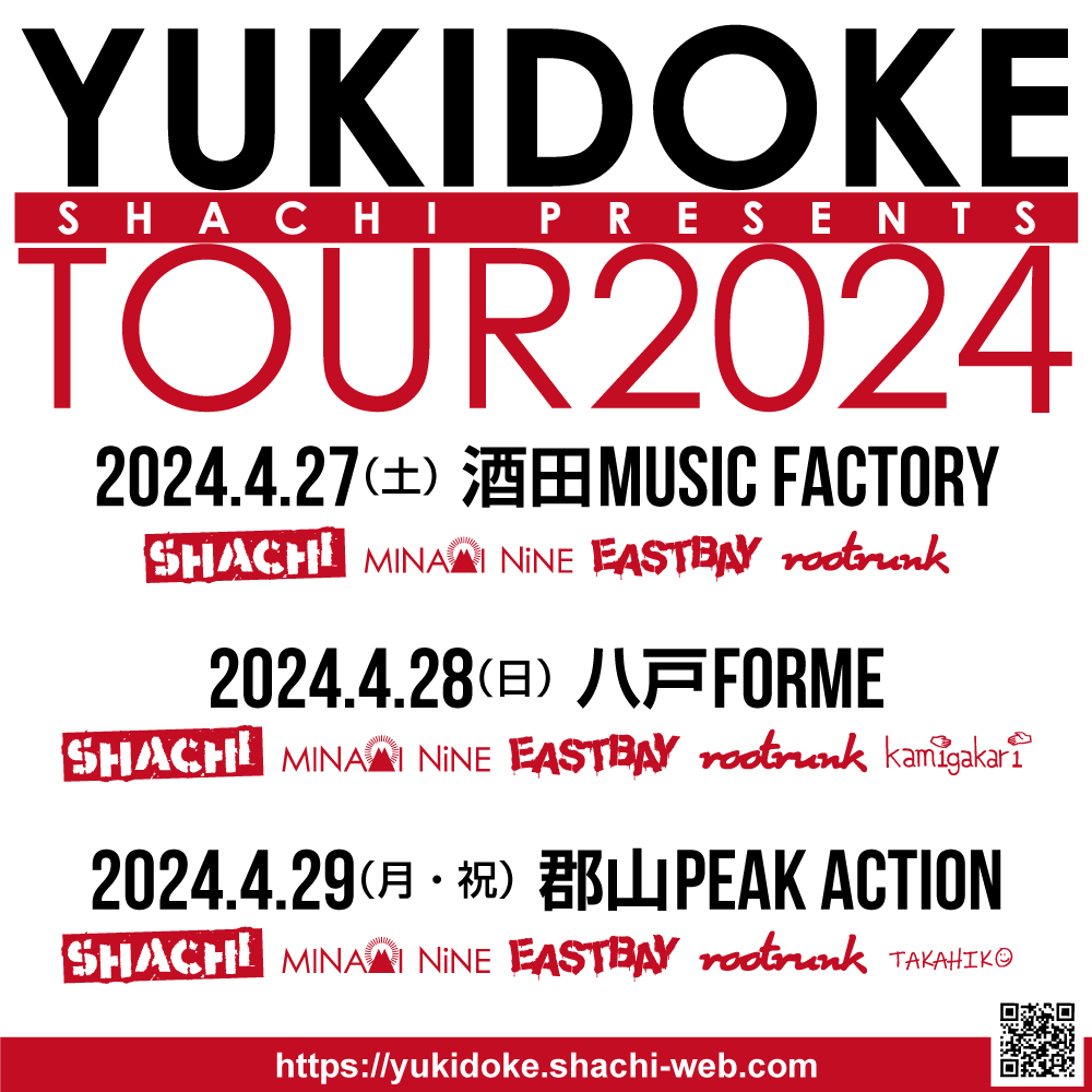 今年結成30周年を迎えたパンクロック・バンド、SHACHI が4月末に「YUKIDOKE TOUR」を開催することを発表しました。このツアーには、MINAMI NiNE、EASTBAY、rootrunkの3組が全公演に出演することが決まっており、チケットの受付がスタートしている。